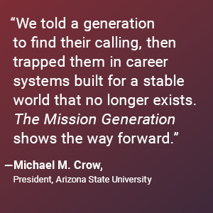 The Mission Generation introduces a new framework for career planning that is not defined by your age. Whether Boomers, Gen X, Millennials, or Gen Z, the “Mission Generation” is united by its refusal to accept broken systems. You can become a changemaker and builder, confronting the barriers that block purposeful work and restoring meaning where institutions have failed. But to navigate this new map, you need the navigational resources that create stability while you pursue your mission. You need The Mission Generation.